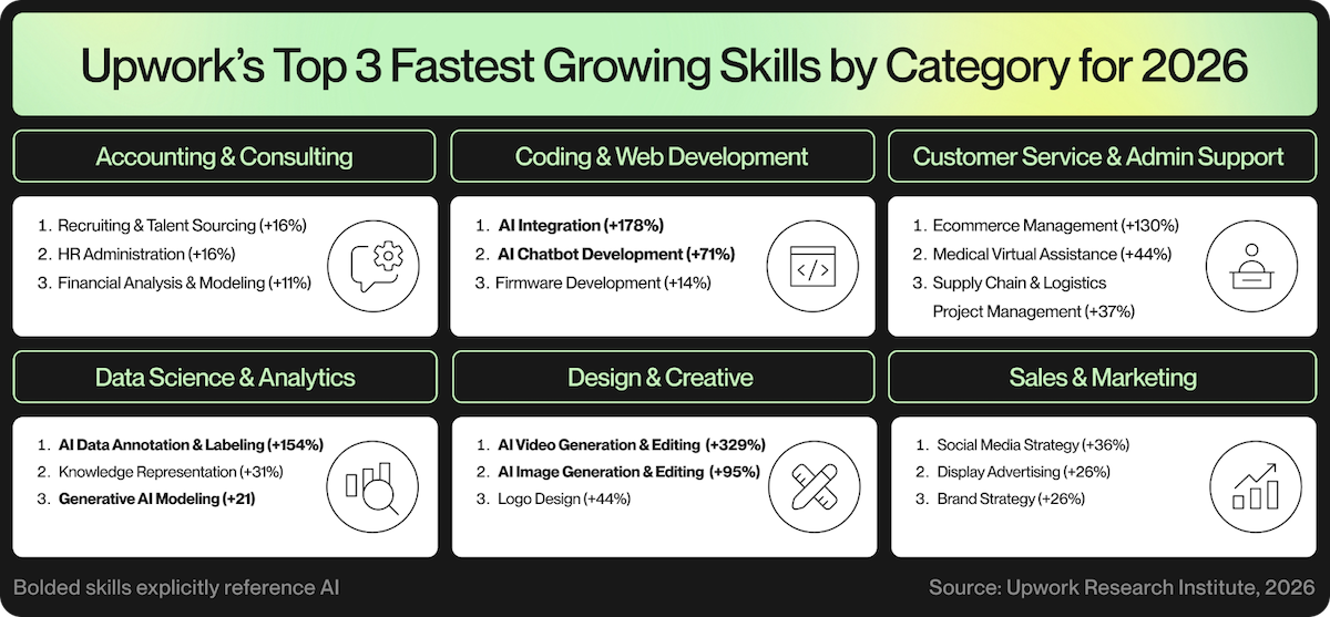 The job market is responding accordingly. According to Upwork research, hiring for AI Integration roles grew by a staggering 178% year-over-year.