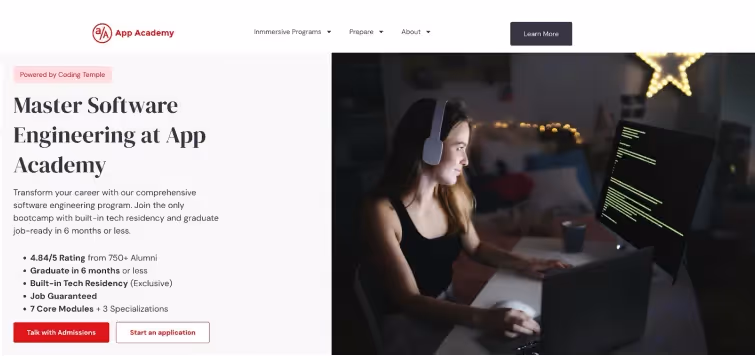 - Graduates get access to Launchpad, App Academy’s exclusive network of hiring 5,000 hiring businesses, and Tech Residency, live security projects offering real dev team experience