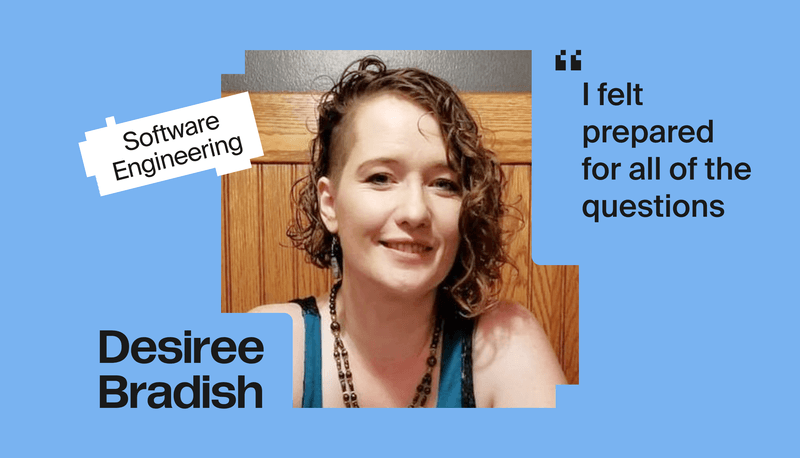 As a college student curious about tech, Desiree Bradish had built a game that brought together a community of nearly 15,000. It was a fun side project, but she decided to move away from coding to pursue a career in graphic design and animation instead. Five years and lots of long hours later, Desiree knew she wanted a change, but wasn’t clear what that was until she found herself furloughed during the pandemic. Determined to return to tech, she enrolled in TripleTen’s bootcamp and landed an entry-level job within weeks of finishing. Now a full-stack engineer, Desiree loves that her new career sets a good example for her family.