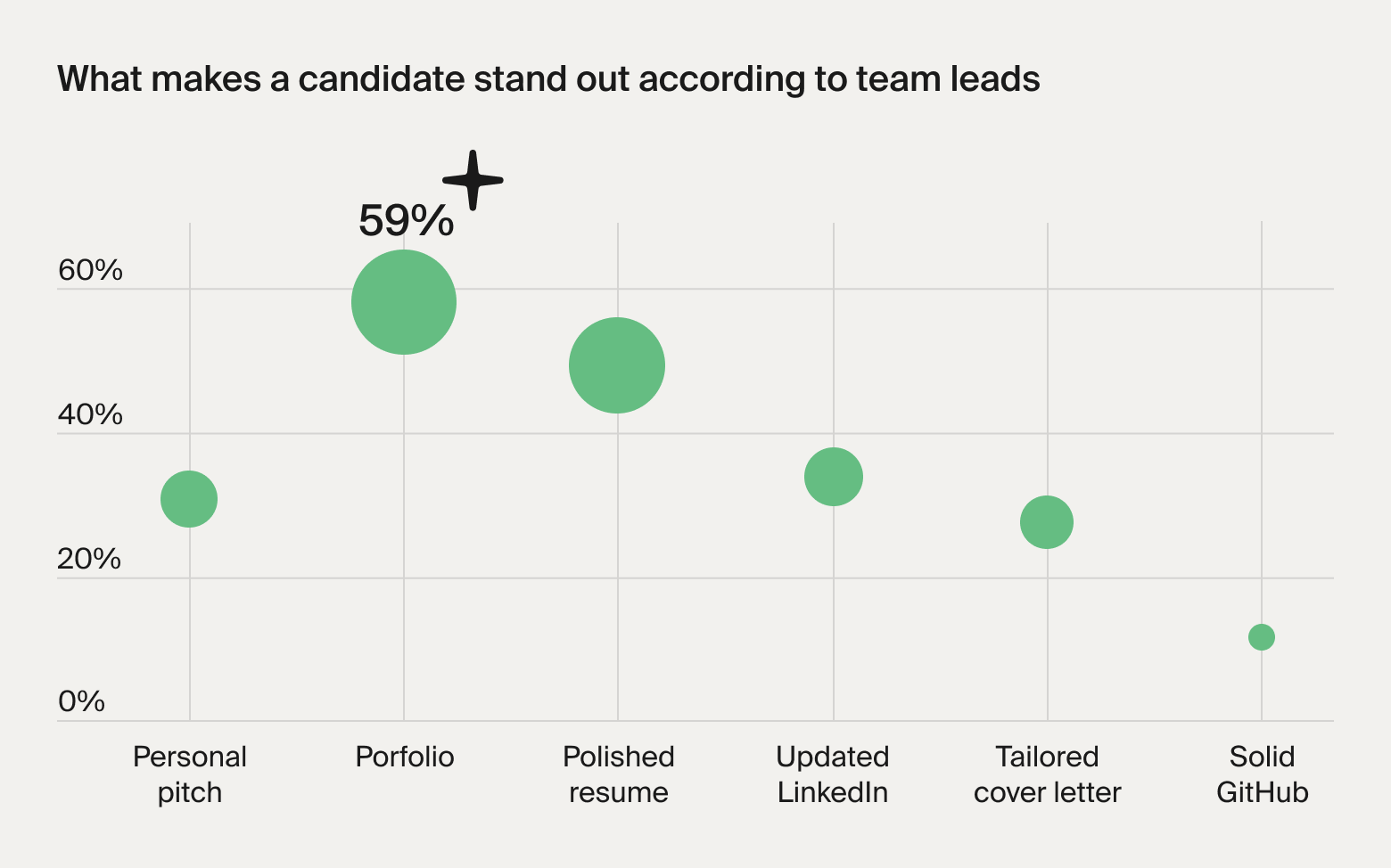 Fun fact: a good portfolio like the one you get at a bootcamp is what 59% of team leads said was the top quality that made candidates stand out.
