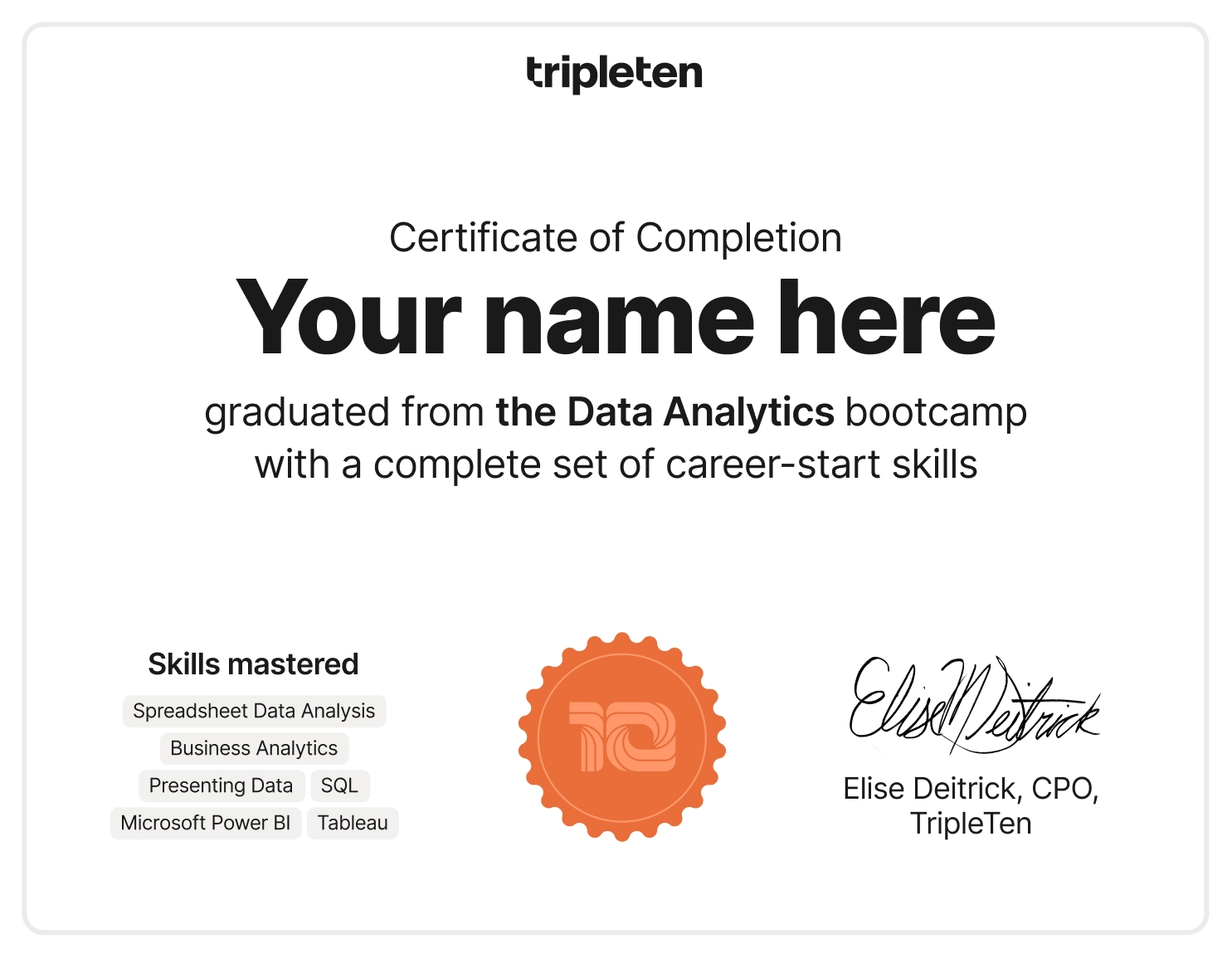 A bootcamp such as TripleTen’s gives you the skills and portfolio to compete for entry-level data analyst roles if you do the work. Employers want to see projects, problem-solving ability, and an understanding of the business context behind the data. This know-how is what TripleTen’s program provides. Pair that with networking, a sharp resume honed with TripleTen’s career experts, interview skills gained in mock interviews with these same experts, and your chances of employment are good.