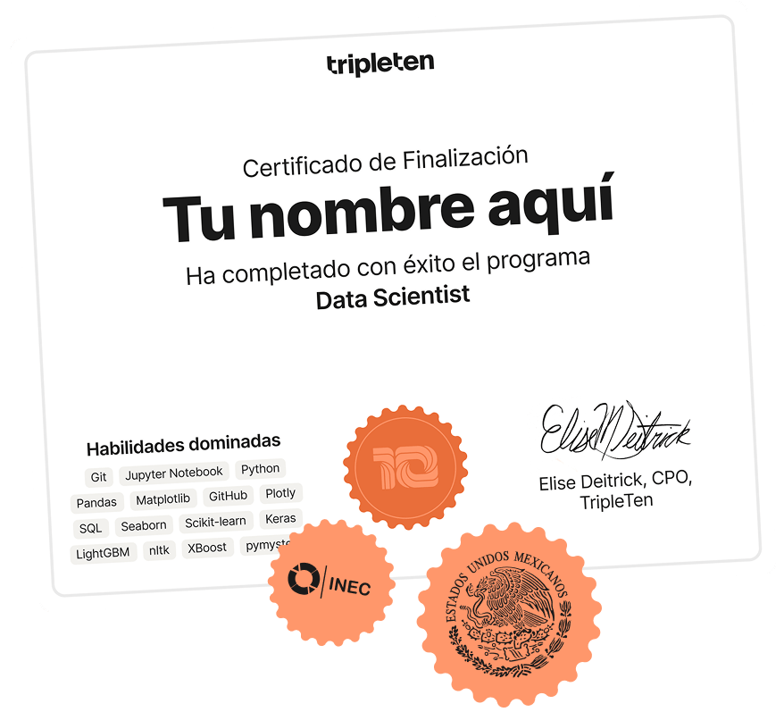 El 93% de nuestros graduados consigue empleo dentro de los 6 meses posteriores a su graduación. Con nuestro Acelerador de Carrera, apoyo a tu CV, entrevistas simuladas y coaching personalizado, estarás más que preparado. Y si no consigues un puesto en los 6 meses después de graduarte, te reembolsamos tu dinero, garantizado.