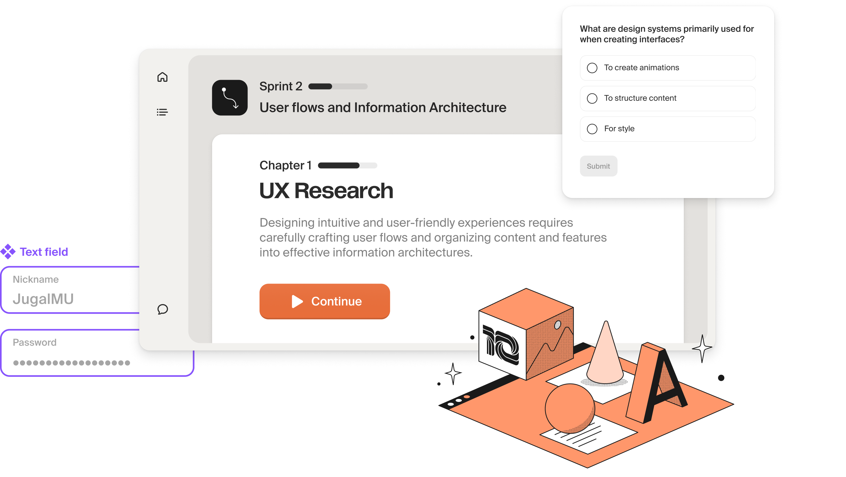 Consistency is crucial in creating successful user experiences. This sprint will explore the principles and components of design systems, which provide a scalable and cohesive framework for designing and building digital products. You’ll dive deeper into various design system components, including typography, color palettes, buttons, icons, and design patterns. Additionally, you'll learn to create comprehensive documentation and guidelines for design systems, preparing you to understand and utilize design systems in future projects.